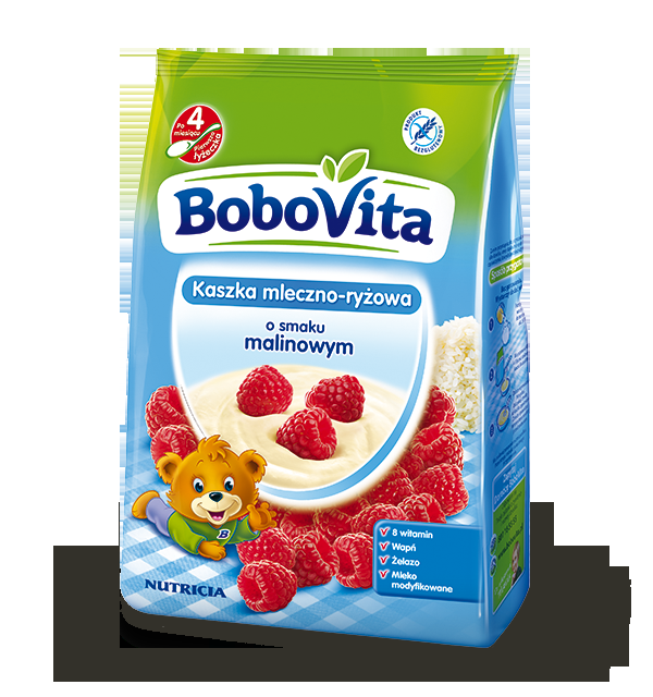 | Extra info | Bobovita kinder pap melk en rijst vanaf 4 maand smaak frambozen. Het pap bevat acht vitaminen, calcium, essentieel voor botten en tanden en ijzer nodig in het proces van bloedcelvorming. Glutenvrije! |